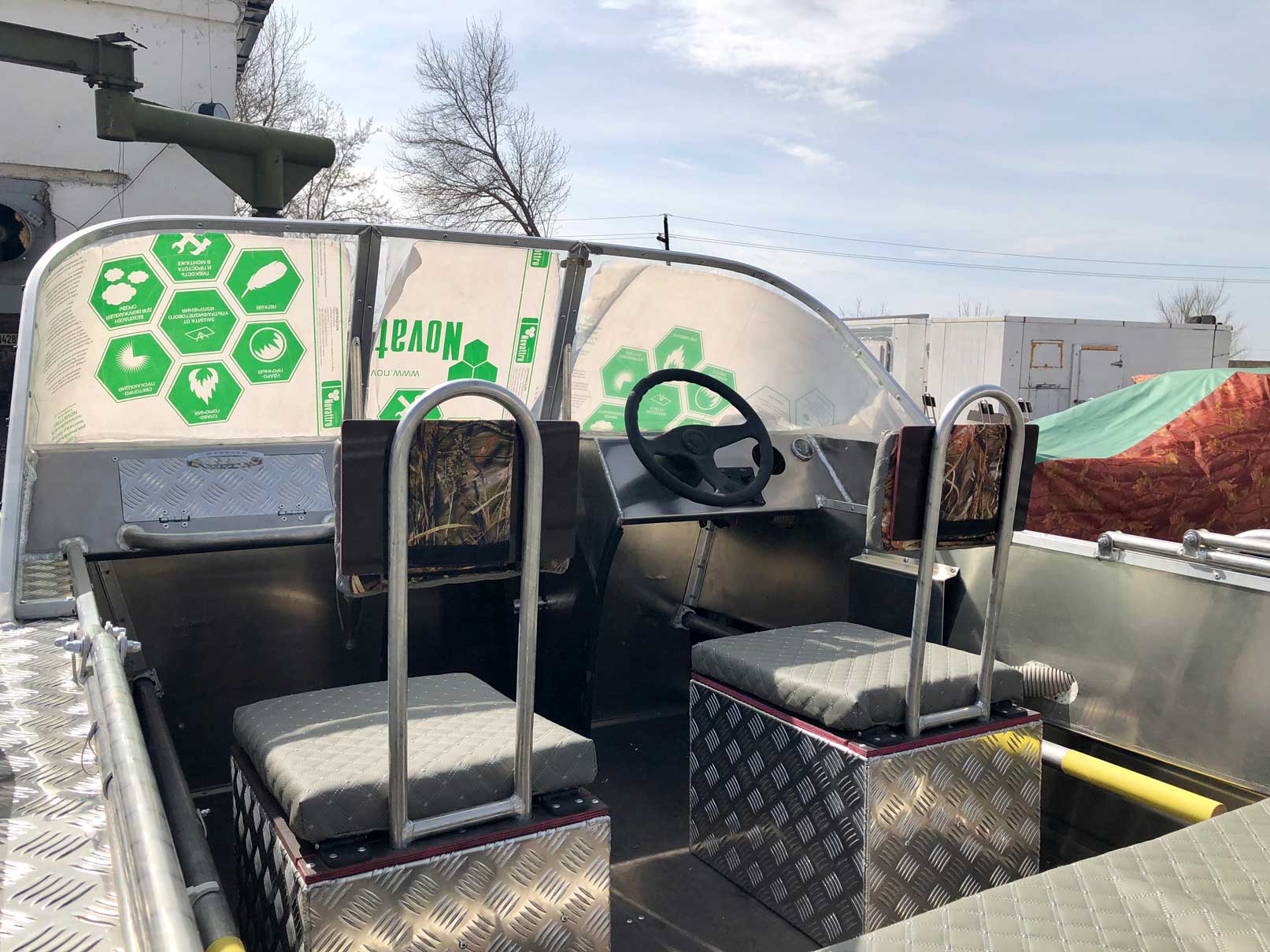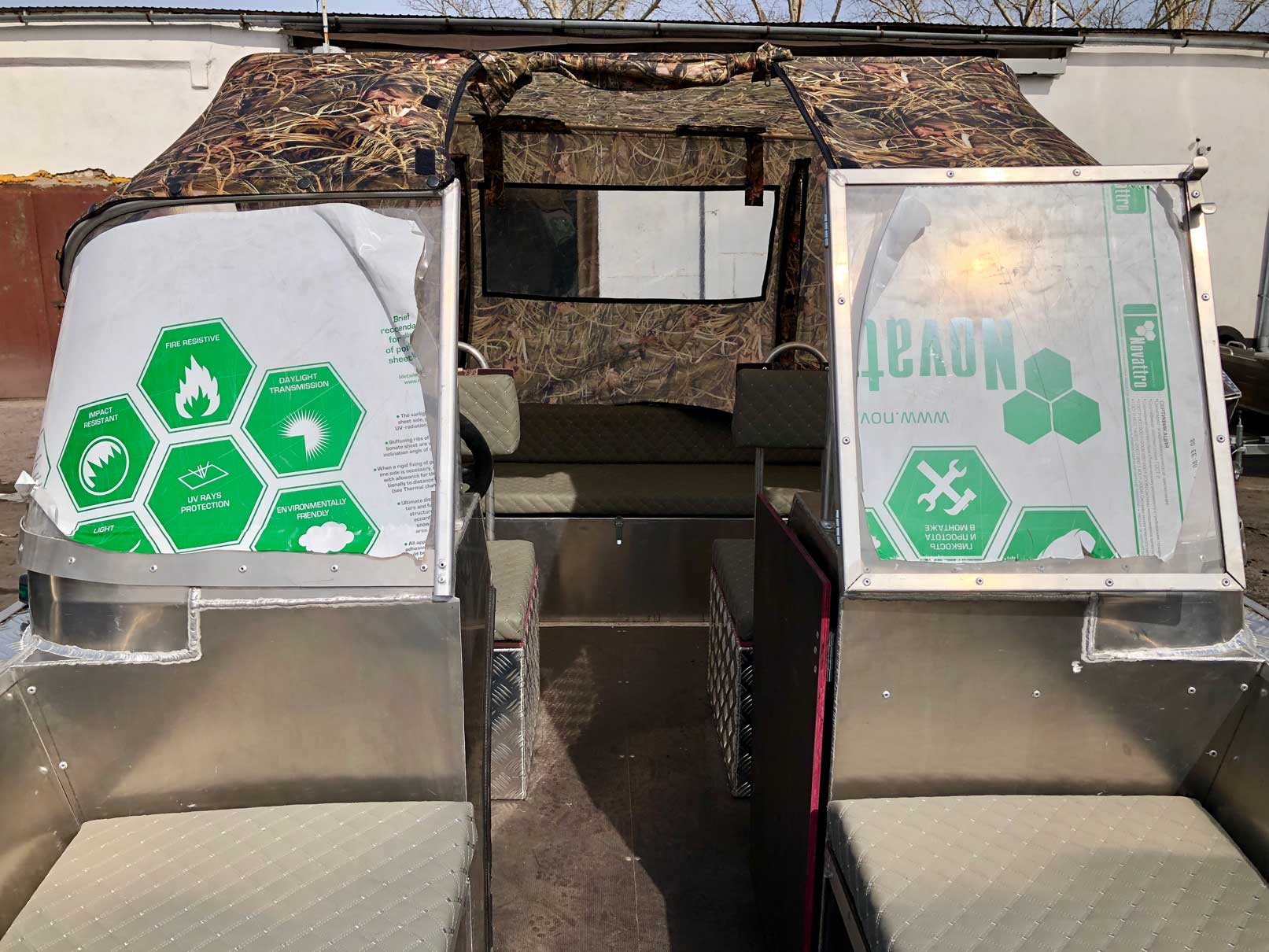Декоративная оклейка внутреннего пространства катера (карпет)